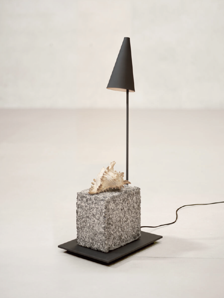 Conical Metal and Stone Lamp